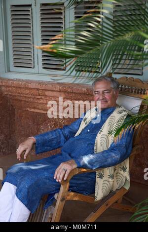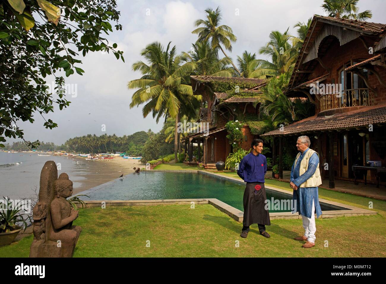 India Goa Coco Beach Richard Holkar Hijo Del Maharadjah De Indore Delante De Su Hotel De Lujo Ahilya Por El Mar Con Su Piscina Delante De Una Playa Bordeada De Cocoteros Fotografia De Stock Maharajadhiraj raj rajeshwar sawai shri yeshwantrao ii holkar xiv bahadur (maharaja of.