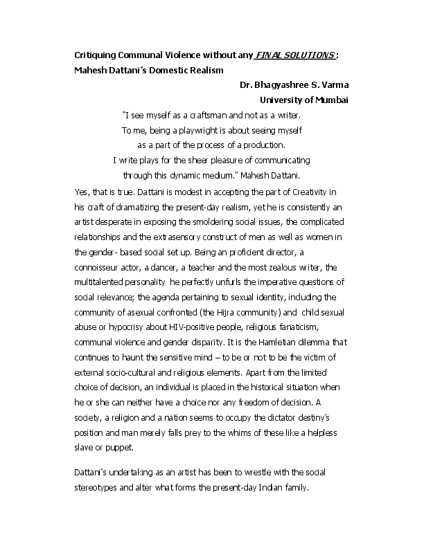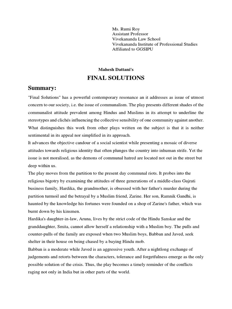 Title Of Final Solutions By Mahesh Dattani - Get your custom essay on.