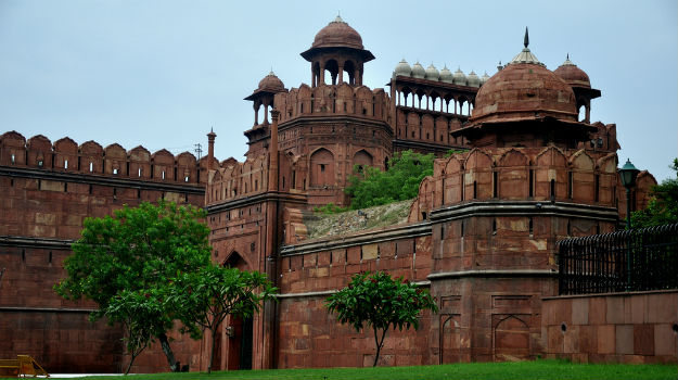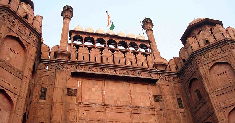 Unknown Facts About Red Fort / The fort's massive red sandstone walls, which stand 75 feet (23 metres) high, enclose a complex of palaces and entertainment halls, projecting balconies, baths and indoor canals, and geometrical gardens, as well.
